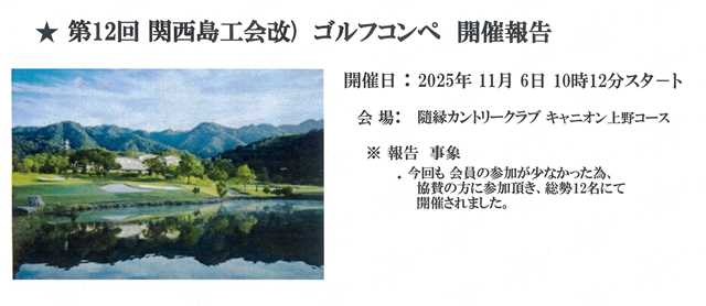 5月22日 第11回 関西島工会ゴルフコンペ開催報告